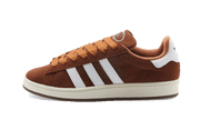 La Adidas Campus 00s Bark présente une base en cuir marron, accompagnée de trois épaisses bandes blanches sur le panneau latéral, caractéristiques de la marque et accordées au heel tab. Proche de la Campus 80s, ce modèle dévoile également une semelle jaunie, pour accentuer l'effet vintage, assortie d'une outsole en gomme.
