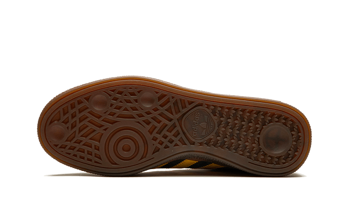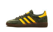 Cette Adidas Handball Spezial Night Cargo présente une base en suède vert, accompagnée des trois bandes en cuir jaune accordées au heel tab et au branding sur la languette. Un branding doré sur le panneau latéral apporte une touche de classe au tout tandis qu'une semelle en gomme conclut le design.